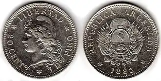 Efígie da República conhecida também na Argentina como Efígie da Liberdade, figurou em muitas moedas argentinas e foi criada pelo artista francês Eugène-André Oudiné. Representada com o perfil sereno e cabelo abundante soltos ao vento e um barrete frígio como tocado.
