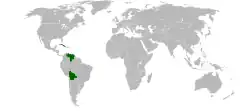 Antiga e Barbuda·Argentina·Baamas·Barbados·Belize·Bolívia·Brasil·Canadá·Chile·Colômbia·Costa Rica·Cuba·Dominica·El Salvador·Equador·Granada·Guatemala·Guiana·Haiti·Honduras·Jamaica·México·Nicarágua·Panamá·Paraguai·Peru·República Dominicana·Santa Lúcia·São Cristóvão e Neves·São Vicente e Granadinas·Suriname·Trindade e Tobago·Uruguai·Venezuela