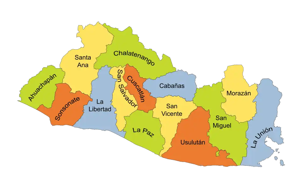 El Salvador é dividido nos seguintes 14 departamentos: