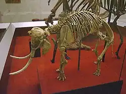 A segunda radiação é representada pelo aparecimento dos Gomphotheriidae no Mioceno,[41] que evoluíram a partir dos Eritreum[40] e tiveram origem em África, espalhando-se por todos os continentes, excepto Austrália e Antárctida. Os membros deste grupo incluem o Gomphotherium e o Platybelodon.[41] A terceira radiação começou no final do Mioceno e resultou na chegada dos Elephantidae, que descendem dos Gomphotheriidae.[42] O Primelephas gomphotheroides africano deu origem ao Loxodonta, Mammuthus e Elephas. O ramo Loxodonta separou-se rapidamente, na fronteira entre o Mioceno e o Plioceno, enquanto que o Mammuthus e o Elephas divergiram mais tarde, no Plioceno. Loxodonta permaneceu em África, enquanto Mammuthus e Elephas se espalharam pela Eurásia, e Mammuthus chegou até à América do Norte. Ao mesmo tempo, os Stegodontidae, outro grupo de proboscídeos descendente dos Gomphotheriidae, espalharam-se pela Ásia, incluindo o subcontinente indiano, a China, o Sudeste Asiático e o Japão. Os mamutes continuaram a evoluir para novas espécies, como o mastodonte-americano.[43] No começo do Pleistoceno, os Elephantidae experimentaram uma alta taxa de "especiação".[44] O Pleistoceno também viu a chegada do Palaeoloxodon namadicus, o maior mamífero terrestre de todos os tempos.[45] A Loxodonta atlantica tornou-se a espécie mais comum do Norte e Sul de África, mas foi substituída pelo Elephas iolensis no Pleistoceno. Só quando os Elephas desapareceram de África é que os Loxodonta puderam tornar-se os dominantes na forma das espécies modernas. Os Elephas diversificaram-se em novas espécies na Ásia, como o E. hysudricus e o E. platycephus;[46] sendo estes últimos os antepassados do moderno elefante-asiático.[44] Os Mammuthus evoluíram em várias espécies, como o famoso mamute-lanoso.[46] No Pleistoceno tardio, muitas espécies desapareceram durante a glaciação do Quaternário, o que eliminou 50% dos géneros de mais de 5 kg em todo o mundo.[47]