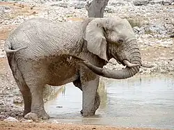 Os elefantes utilizam lama como protetor solar, protegendo a sua pele da luz ultravioleta. Embora espessa, a pele de um elefante é muito sensível. Sem a proteção dos banhos de lama, as picadas de insetos e a perda de humidade podem provocar sérios danos na pele. Depois de se banharem, os elefantes costumam usar a sua tromba para espalhar pó sobre si mesmos, o que cria uma crosta seca protetora. Os elefantes têm dificuldade em libertar calor através da pele devido à sua baixa relação área superficial-volume, que é muitas vezes menor do que a de um ser humano. Têm sido observados a erguer as patas, provavelmente num esforço para expor as plantas dos pés ao ar.[85]