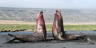 O elefante-marinho-do-sul (Mirounga leonina) é um mamífero aquático pertencente à família Phocidae. Este animal recebe esse nome devido à presença de um focinho inflável nos machos da espécie, que se assemelha a uma tromba. Já as fêmeas apresentam focinho arredondado, o que facilita a sua diferenciação. Outro fator que muda entre os sexos é o tamanho: as fêmeas são menores e alcançam cerca de 3,5 metros, enquanto os machos chegam a atingir 6,5 metros de comprimento, além de alcançar cerca de três toneladas e meia. Uma característica comum às duas espécies é a presença de unhas nas pontas das nadadeiras, e o revestimento do corpo por uma espessa camada de gordura, que serve tanto como isolante térmico quanto para proteção contra ataques de predadores, como tubarões e orcas.[1]