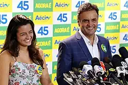 - ↑ «"Fanático por corrupção", Aécio ergue o dedo e chama Luciana de "leviana"». Congresso em Foco. 3 de outubro de 2014. Consultado em 27 de agosto de 2018