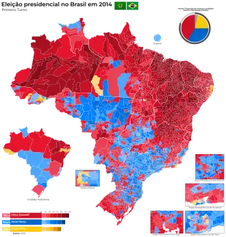 - 1 2 3 4 5 «Resultados - 1º turno presidencial 2014». Folha de S.Paulo. 5 de outubro de 2014. Consultado em 14 de fevereiro de 2018. Cópia arquivada em 1 de dezembro de 2017