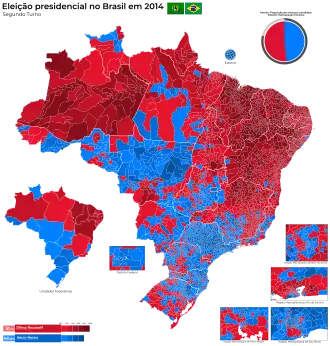 - 1 2 3 4 5 «Resultados - 2º turno presidencial 2014». Folha de S.Paulo. 26 de outubro de 2014. Consultado em 14 de fevereiro de 2018. Cópia arquivada em 6 de dezembro de 2017