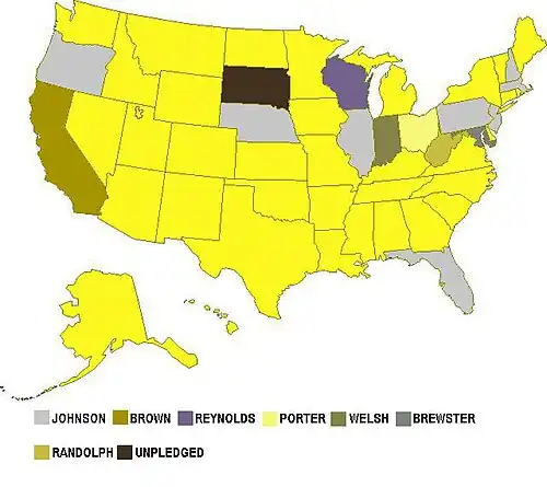 | Heric Hass | Partido Socialista Trabalhista (Socialist Labor Party)[5] | Nova Iorque | 45.189 | 0,06% | 0 | 0% | Henning A. Blomen | Massachusetts | 0 |