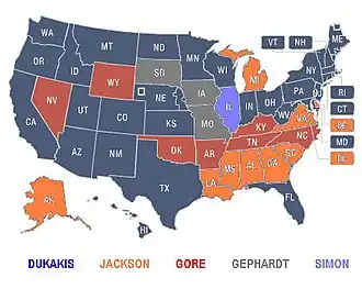 - ↑ «Democratic Convention 1988». The Green Papers. Consultado em 13 de abril de 2008