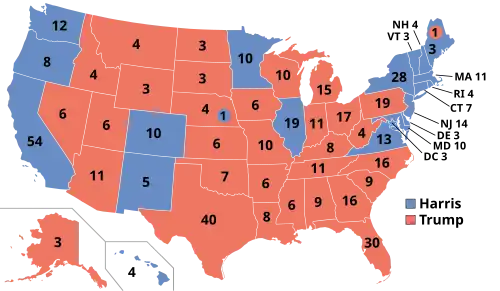 O presidente se elege em uma assembleia formada por 538 delegados. Este número é igual à soma de 100 Senadores + 435 Deputados + 3 Delegados de Washington D.C., que não tem senadores mas sim delegados. Cada estado contribui com um número de delegados, cujo número é igual à soma de seus deputados mais seus senadores no Congresso. Exceto Washington D.C., que não tem senadores, mas sim três delegados. Como há 538 delegados no total, um candidato precisa de pelo menos 270 para ser eleito. O que se traduz em metade dos 538 (ou 269) + 1 = 270 delegados a serem eleitos presidente dos Estados Unidos.