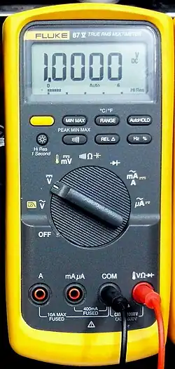 - Voltímetro: É um aparelho que os eletricistas usam para medir a diferença de potencial elétrico entre dois pontos num circuito.