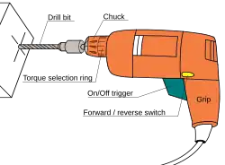 - Furadeira ou berbequim: É uma máquina utilizada para efetuar furos através de brocas.