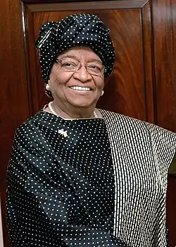 Ellen Johnson-Sirleaf (Monróvia, 29 de outubro de 1938) é uma política liberiana, foi presidente da Libéria de 2006 até 2018. Foi a vencedora das eleições presidenciais de 8 de novembro de 2005, em que derrotou o ex-futebolista George Weah. Foi reeleita em 2011 para um novo mandato, tendo recebido o Prêmio Nobel da paz de 2011, juntamente com a compatriota Leymah Gbowee e a iemenita Tawakel Karman.[1]
