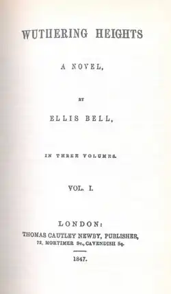 - Bell, Ellis (1847). Wuthering Heights, A Novel 1 ed. Londres: Thomas Cautley Newby.