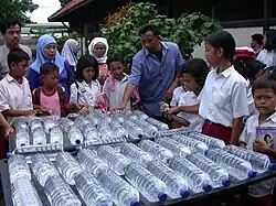 Além disso, é possível fazer a desinfecção solar da água, que envolve a exposição de garrafas de plástico de politereftalato de etileno (PET) cheias de água ao Sol por várias horas.[49] Os tempos de exposição variam dependendo do tempo e do clima, de um mínimo de seis horas a dois dias em condições totalmente nubladas.[50] É recomendado pela Organização Mundial de Saúde (OMS) como um método viável para o tratamento doméstico de água e armazenamento seguro.[51] Mais de dois milhões de pessoas nos países em desenvolvimento usam este método para obter água potável diariamente.[50]