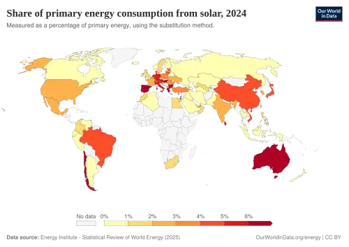 Estima-se que a energia solar se torne a maior fonte mundial de eletricidade em 2050, sendo que a energia solar fotovoltaica e a energia solar concentrada contribuirão com 16 e 11 por cento da demanda de consumo global, respectivamente.[55]