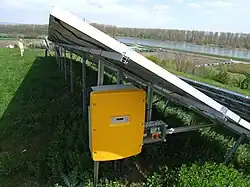 Também se emprega a fotovoltaica para alimentar instalações de bombagem para sistemas de irrigação, água potável em áreas rurais e bebedoiros para o gado, ou para sistemas de dessalinização de água.[81][82][55]