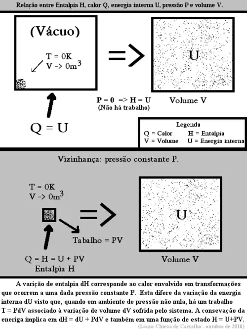 onde U é a energia interna do sistema e PV é o produto da pressão pelo volume do sistema (e da vizinhança), ou seja, a energia armazenada no conjunto sistema vizinhança.