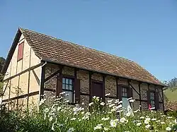 Já em relação à estrutura do telhado, a maioria das casas da imigração alemã possui telhado de duas águas, com caibros simples, e sem tirantes por serem construções menores.[8] Em algumas edificações, encontra-se o que Weimer (1983) convenciona chamar de madeiramento inclinado, que