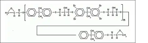 Formadas pela reação entre epicloridrina Y e Tetrabromobisfenol A, os quatro radicais ligados ao bromo, dão à resina a característica de auto-extinguível.
