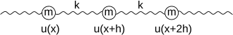 Aqui u (x) mede a distância a partir do equilíbrio de massa situado em x. As forças exercidas sobre a massa m na posição x + h são as seguintes: