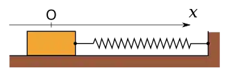 Considere-se um bloco de massa sobre uma superfície horizontal, ligado a uma mola elástica horizontal de constante elástica , tal como mostra a figura ao lado. Na situação idealizada em que o atrito entre o bloco e a superfície for nulo, a energia mecânica do sistema de bloco e mola permaneceria constante.