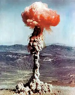 - Durante a a Guerra Fria,os Estados Unidos desenvolveram bombas de hidrogénio com uma potência máxima teórica de 25 Mt de TNT (100 PJ); a União Soviética desenvolveu uma arma protótipo, alcunhada Tsar Bomba, que foi testada a 50 Mt (210 PJ), mas que tinha uma potência máxima teórica de 100 Mt (420 PJ).[5] O potencial destrutivo real de tais armas pode variar muito dependendo das condições, como a altitude a que são detonadas, a natureza do alvo, e as caraterísticas físicas da paisagem na qual são detonadas.