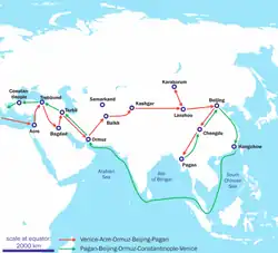 O primeiro desses viajantes foi Giovanni da Pian del Carpine, que viajou para a Mongólia e de volta entre 1241-1247.[4] O viajante mais famoso, porém, foi o veneziano Marco Pólo que na sua obra "As Viagens" relatou as suas viagens em toda a Ásia entre 1271-1295, descrevendo ter sido um convidado da dinastia Yuan na corte de Cublai Cã. A sua obra foi lida por toda a Europa e tornou-se num dos grandes mananciais de informação na época. De 1325-1354, um estudioso marroquino de Tânger, ibne Batuta, viajou do Norte de África ao Sul da Europa, Médio Oriente e Ásia, tendo chegado à China. Após regressar, ditou o relato destas viagens a um estudioso que conhecera em Granada, a Rihla, ("A viagem"),[5] única e então pouco divulgada fonte de informação sobre suas aventuras. Em 1439, Niccolò Da Conti publicou um relato das suas viagens à Índia e ao Sudeste Asiático.
