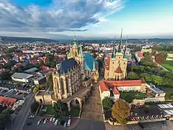 - Catedral de Erfurt e Severikirche (Igreja de São Severino de Ravenna), que dominam a Domplatz, a Praça da Catedral.