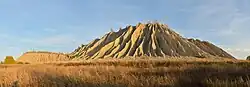 O movimento de massa é o movimento descendente e externo de rocha e sedimentos em uma superfície inclinada, principalmente devido à força da gravidade.[40][41]