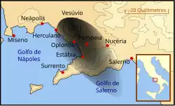 ![]() Alcance da erupção do Vesúvio em 79 | |