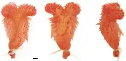 As fêmeas, quando maduras, apresentam ovários com folículos em fase quiescente (vitelogênese primária, encontrado comumente em fêmeas imaturas), na qual ocorre a ausência de vitelo ou em vitelogênese secundária, com a deposição de vitelo. Seus ovidutos são divididos em infundíbulo (estrutura que recebe os folículos), útero, responsável pelo desenvolvimento embrionário e possui diversas câmaras onde serão armazenados cada ovo, e vagina.[31]