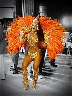As escolas de samba mais conhecidas são as da cidade do Rio de Janeiro e sua região metropolitana, que desfilam no Sambódromo da Marquês de Sapucaí, e as de São Paulo, que desfilam no Sambódromo paulistano.[1] Essas escolas realizam um espetáculo considerado suntuoso, que atrai turistas de várias partes do mundo. Porém, há escolas de samba em quase todos os estados brasileiros e em muitos países do mundo.[3][4] São consideradas uma das principais, se não a principal vitrine do carnaval brasileiro,[5] e vêm ganhando cada vez mais um aspecto cênico, com alguns componentes executando dramatizações teatrais ou coreografias.[6][7][8][9]