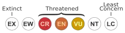 Categorias com menor risco de ameaça são quase ameaçada, pouco preocupante e a não mais utilizada dependente de conservação. Espécies não avaliadas ou deficiente de dados não são consideradas espécies ameaçadas pela IUCN.[5]