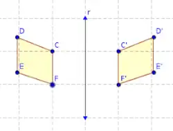 A reflexão funciona como uma isometria em um hiperplano com uma série de pontos fixos, que é denominado como eixo no e como plano no . A reflexão funciona como um espelho que reflete, como um p para um q em um eixo vertical. Levando em consideração que se refletirmos novamente no mesmo eixo voltará ao ponto inicial como no caso anterior voltará a ser um p.