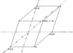 O espaço euclidiano não é tecnicamente um espaço vetorial mas mais exatamente um espaço afim, em que um espaço vetorial age. Intuitivamente, a distinção diz apenas que não há nenhuma escolha canônica de onde a origem deve se dirigir no espaço, porque ela pode ser transladada para qualquer lugar. Neste artigo, esse detalhe técnico é amplamente ignorado.