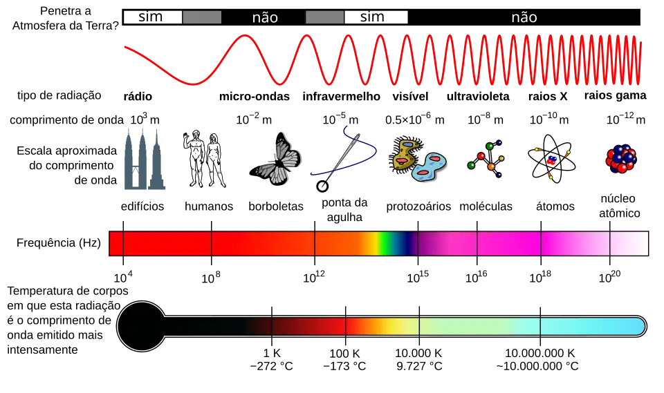 De acordo com a frequência e comprimento de onda das ondas eletromagnéticas pode-se definir um espectro com várias zonas (podendo haver alguma sobreposição entre elas).
