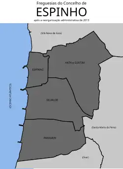 - ↑ Seara.com. «Município de Espinho». Município de Espinho. Consultado em 7 de dezembro de 2024