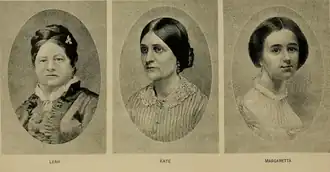 As irmãs Fox - Catherine "Kate" (1838–1892), Leah (1814–1890) e Margaret (1836–1893) -, tiveram um papel decisivo no surgimento do espiritismo. Eram filhas de David e Margaret Fox, e foram residir em Hydesville, Nova Iorque. Em 1848, a família começou a ouvir sons de pancadas inexplicados. Kate e Margaret realizaram sessões de canalização numa tentativa de contato com a suposta entidade espiritual que promovia os sons e declararam ter estabelecido contato com o espírito de um mascate que fora alegadamente assassinado e enterrado sob a casa. Suas demonstrações de comunicação com os espíritos incluíam principalmente batidas e pancadas e Kate tinha também a mediunidade de escrita direta, psicofonia, luzes espirituais, materialização e poltergeist.[33] Os céticos suspeitaram que isto foi apenas um engano inteligente e uma fraude. Margaret posteriormente afirmou a utilização das juntas dos dedos dos seus pés para produzir sons mas depois ainda desmentiu essa sua afirmação, alegando tê-la feito em troca de dinheiro de religiosos que se aproveitaram da situação de pobreza dela e de suas irmãs. As demonstrações de mediunidade mostraram ser um negócio lucrativo e logo se tornaram formas populares de entretenimento e catarse espiritual. As irmãs Fox acabaram fazendo disso sua fonte de renda e outros seguiram seu exemplo.[24][30]