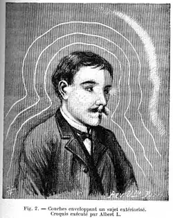 "Croquis" de um médium: gravura da obra "Extériorisation de la sensibilité" de Albert de Rochas (Paris, 1899).