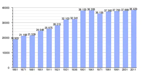 | Variação demográfica do município entre 1861 e 2011[8] |