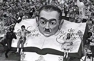 Em abril de 1986, Carlos Alberto Dória foi eleito presidente da Mangueira. Carlinhos Dória, como era conhecido, era policial militar e morador da Mangueira. Em seu mandato, foi criada a escola de samba mirim Mangueira do Amanhã e a Vila Olímpica da Mangueira (que seria inaugurada em 1989).[103] Dória se envolveu em brigas com a cantora e compositora Leci Brandão e com o diretor de harmonia Xangô da Mangueira, o que culminou com o afastamento dos dois da escola. O ex mestre-sala Delegado assumiu a direção de harmonia, substituindo Xangô.[104] Tentando o bicampeonato, a Mangueira escolheu mais um enredo de homenagem, dessa vez, ao poeta Carlos Drummond de Andrade. O carnavalesco Júlio Mattos optou por não contar a história da vida do poeta, dividindo o desfile em doze setores inspirados em poemas de Drummond.[105] Ao saber do enredo, em julho de 1986, o poeta agradeceu a homenagem em carta endereçada à Mangueira: "Sempre me habituei a ver na gloriosa Mangueira uma das forças mais representativas de nossa cultura popular. Por tradição, ela soube captar os sentimentos e aspirações do seu povo, transformando-os em matéria rica de criação artística, internacionalmente admirada", escreveu o poeta.[103] Recuperando-se de um infarto, Drummond não foi liberado pelos médicos para desfilar.[106] Pela primeira vez a Mangueira teve um samba-enredo composto por uma mulher. Vera Lúcia da Silva, a Verinha, compôs o samba do desfile junto com Bira do Ponto e Rody.[107] A obra recebeu duras críticas de especialistas por sua letra simples e melodia marcheada. A Mangueira foi a última das oito escolas que se apresentaram na primeira noite do Grupo 1 (antigo 1-A), iniciando sua apresentação por volta das oito horas da manhã da segunda-feira de carnaval. O Jornal do Brasil elogiou o desfile, mas apontou que fantasias e alegorias estavam "distantes do visual exigido" para aquela época.[108] O jornal O Globo também elogiou a apresentação, destacando a Comissão de Frente formada pelos baluartes mangueirenses Aluísio Dias, Carlos Cachaça, Jorge Zagaia e Nelson Sargento, e por amigos de Drummond, como Chico Buarque, Aldir Blanc, João Nogueira, Hermínio Bello de Carvalho, Affonso Romano de Sant'Anna, Maria Martha Barbosa, Rildo Hora, Paulo Henrique Barbará, Hélio Thys, Dalmo Castelo e Preto Rico.[109] Apesar de não ser apontada por especialistas como uma das favoritas ao título, a Mangueira sagrou-se campeã do carnaval com um ponto de diferença para a vice-campeã Mocidade, que desfilou com o histórico enredo "Tupinicópolis".[110] A vitória da Mangueira foi recebida com surpresa por seus torcedores. A quadra da agremiação estava vazia durante a apuração do resultado.[111][112] Na avaliação dos jurados, a Mangueira recebeu apenas cinco notas abaixo da máxima (10), sendo que quatro foram descartadas, seguindo o regulamento do concurso. Com isso, a Mangueira perdeu apenas um ponto, no quesito Harmonia. No Desfile das Campeãs, a Mangueira recebeu vaias ao iniciar seu desfile, mas finalizou sua apresentação aplaudida pelo público.[113][114] Carlos Drummond de Andrade morreu meses após o carnaval, em 17 de agosto de 1987, aos 84 anos de idade.[115] Na madrugada de 4 de outubro de 1987, o então presidente da Mangueira, Carlos Alberto Dória, foi assassinado com três tiros na porta do prédio onde morava, no bairro do Cachambi. O motivo do crime não foi desvendado. Vice-presidente da Mangueira, e irmão de Carlinhos, Elísio Dória Filho assumiu a presidência da escola.[116]