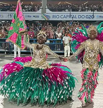 - ↑ Ribeiro, Geraldo (1 de março de 2024). «Estandarte de Ouro premia os melhores do carnaval em 19 categorias durante noite de festa no Vivo Rio». O Globo. Cópia arquivada em 21 de julho de 2024