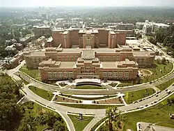 Temendo a propagação da instabilidade internacional regional a partir da invasão iraquiana do Kuwait, em agosto de 1991, o presidente George H. W. Bush lançou e liderou a Guerra do Golfo contra o Iraque, expulsando as forças iraquianas e dissolvendo o Estado fantoche apoiado pelo Iraque no Kuwait.[107] Durante a administração do presidente Bill Clinton em 1994, os EUA assinaram o Acordo de Livre Comércio da América do Norte (NAFTA), fazendo com que o comércio entre os Estados Unidos, Canadá e México disparasse.[108] Devido à bolha da Internet, política monetária estável e gastos reduzidos com o bem-estar social, a década de 1990 viu a mais longa expansão econômica da história moderna dos Estados Unidos.[109]