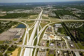 Em 11 de setembro de 2001, sequestradores terroristas da Al-Qaeda lançaram aviões de passageiros contra o World Trade Center na cidade de Nova York e o Pentágono perto de Washington, D.C., matando quase 3 mil pessoas.[110] Em resposta, o presidente George W. Bush lançou a Guerra ao Terror, que incluiu uma ocupação de quase 20 anos no Afeganistão de 2001 a 2021 e a Guerra do Iraque de 2003 a 2011.[111][112] A política do governo projetada para promover habitação acessível,[113] falhas generalizadas na governança corporativa e regulatória,[114] e taxas de juros historicamente baixas estabelecidas pelo Federal Reserve[115] levaram a uma bolha imobiliária em 2006. Isso culminou na crise financeira de 2007–2008 e a Grande Recessão, a maior contração econômica do país desde a Grande Depressão.[116]