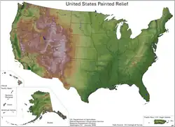 Estados Unidos da América (EUA; em inglês: United States of America — USA; pronunciado: [juːˈnaɪ.təd ˈsteɪʦ əv əˈmɛ.ɹɪ.kə]), ou simplesmente Estados Unidos ou América,[15] são uma república constitucional federal composta por 50 estados e um distrito federal. A maior parte do país situa-se na região central da América do Norte, formada por 48 estados e o Distrito de Colúmbia, o distrito federal da capital. Banhado pelos oceanos Pacífico e Atlântico, faz fronteira com o Canadá ao norte e com o México ao sul. O estado do Alasca está no noroeste do continente, fazendo fronteira com o Canadá no leste e com a Rússia a oeste, através do estreito de Bering. O estado do Havaí é um arquipélago no Pacífico Central. O país também possui vários outros territórios no Caribe e no Oceano Pacífico. Com 9,37 milhões de km² de área e uma população de mais de 330 milhões de habitantes, o país é o quarto maior em área total, o quinto maior em área contígua e o terceiro em população. Os Estados Unidos são uma das nações mais multiculturais e etnicamente diversas do mundo, produto da forte imigração vinda de muitos países.[16] Sua geografia e sistemas climáticos também são extremamente diversificados, com desertos, planícies, florestas e montanhas que abrigam uma grande variedade de espécies.