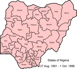 Estados da Nigéria entre 27 de agosto de 1991 e 1 de outubro de 1996