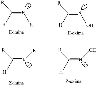 Alguns átomos possuem um par de elétrons ao invés de um substituinte. Par de elétrons são atribuídos a baixa prioridade pela conversão de CIP. Assim, as atribuições de configuração E-Z para compostos como iminas e oximas segue as mesma regras com R ou H > par de elétron.[6]