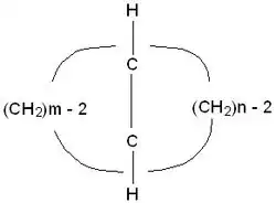 Quando há apenas dois substituintes diferentes, utiliza-se a notação cis e trans. O isômero com ambos os substituintes no mesmo lado são chamados de cis, enquanto que o isômero com substituintes opostos são denominados trans.[6]