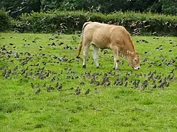 - ↑ Carlson, J.C.; Stahl, R.S.; DeLiberto, S.T.; Wagner, J.J.; Engle, T.E.; Engeman, R.M.; Olson, C.S.; Ellis, J.W.; Werner, S.J. (fevereiro de 2018). «Nutritional depletion of total mixed rations by European starlings: Projected effects on dairy cow performance and potential intervention strategies to mitigate damage». Journal of Dairy Science (em inglês). 101 (2): 1777–1784. doi:10.3168/jds.2017-12858