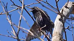 | Adulto nomeado S. v. vulgaris com plumagem reprodutiva mostrando brilho metálico nas penas | |