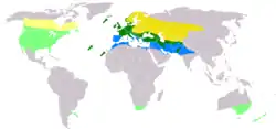 Lineu, 1758 | Maior parte da Europa, exceto o extremo noroeste e extremo sudeste; também Islândia e as Ilhas Canárias | Espécie nominal |